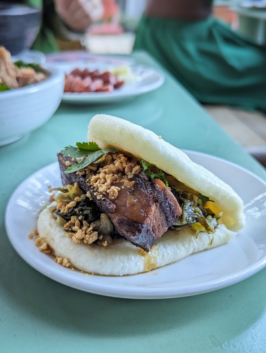 Pork bun clamshell. Period. Great food, ambience, and customer service. Tucked away in a safe(r) corner of downtown called South Park, and when I'm with company I walk over:) line can get long during peak hours but moves reasonably. This is my staple!!